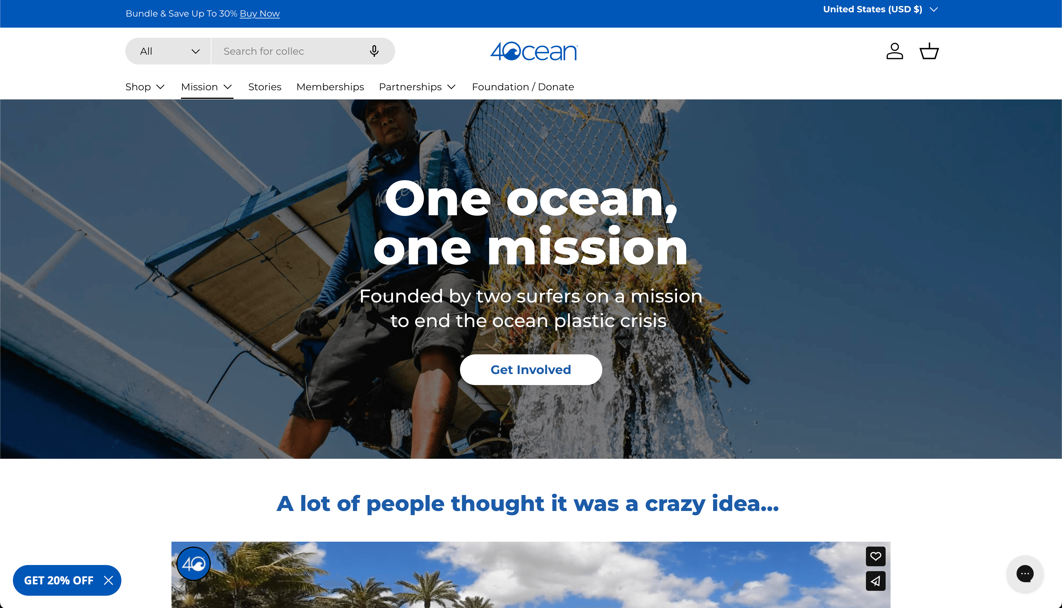 Our first focus was enhancing 4ocean’s eCommerce capabilities to better serve their customers and drive sales that support ocean cleanup efforts. We designed and developed a Shopify-powered store that was optimized for both user experience and operational efficiency. By leveraging Shopify’s flexibility, we were able to create a storefront that reflects 4ocean’s brand mission while providing a seamless shopping experience that converts visitors into supporters.